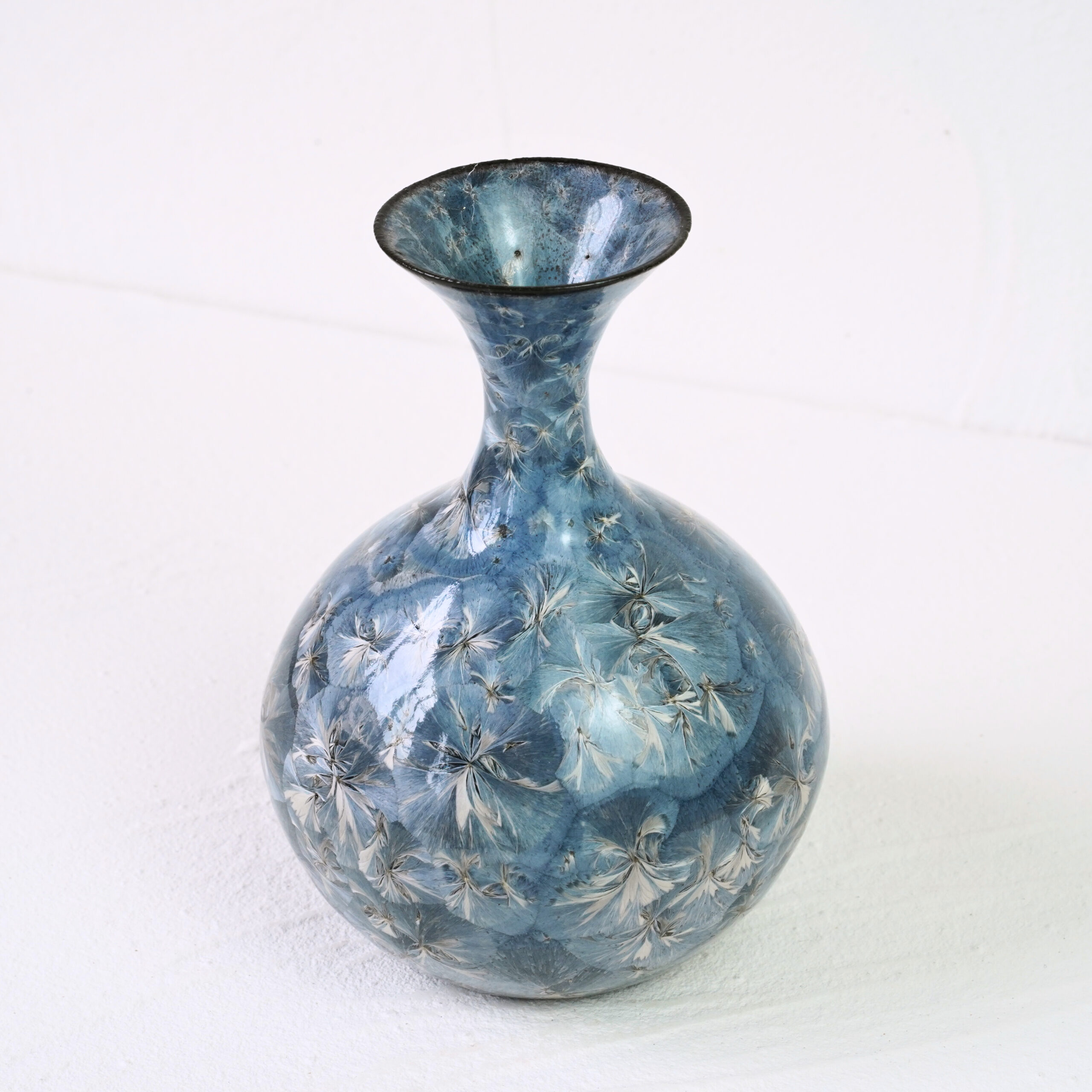 Crystalline is a specialist type of glaze where an interplay of heat, time and chemicals create distinct crystal growth formations on the surface during the firing process, resulting in unpredictable and stunning visual effects.